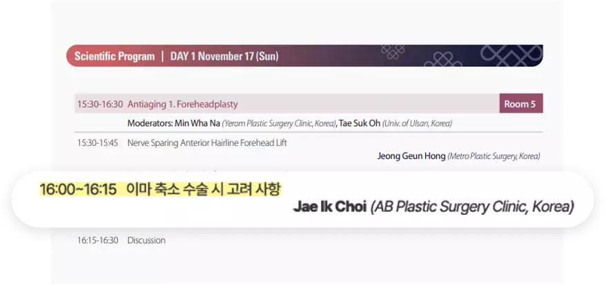 Bệnh viện Thẩm mỹ AB sẽ tiếp tục nâng cao đổi mới trong phẫu thuật bằng cách nghiên cứu và hoàn thiện các kỹ thuật phù hợp với đặc điểm khuôn mặt châu Á. Dựa trên kiến thức chia sẻ tại PRS KOREA 2024 — từ các phương pháp thu nhỏ trán tiên tiến đến kỹ thuật cắt mí trên tối ưu cho khách hàng trung niên châu Á — Bệnh viện Thẩm mỹ AB cam kết phát triển các phương pháp nâng mặt và cắt mí đạt kết quả tự nhiên, cân đối và trẻ hóa.