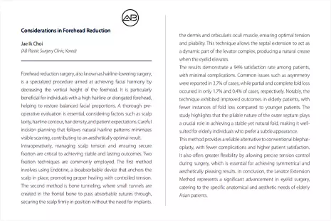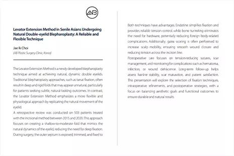 Tại hội nghị năm nay, đội ngũ bác sĩ của Bệnh viện Thẩm mỹ AB đã trình bày những kinh nghiệm chuyên sâu về phẫu thuật thu nhỏ trán và cắt mí trên, đặc biệt dành cho nhóm khách hàng trung niên châu Á.