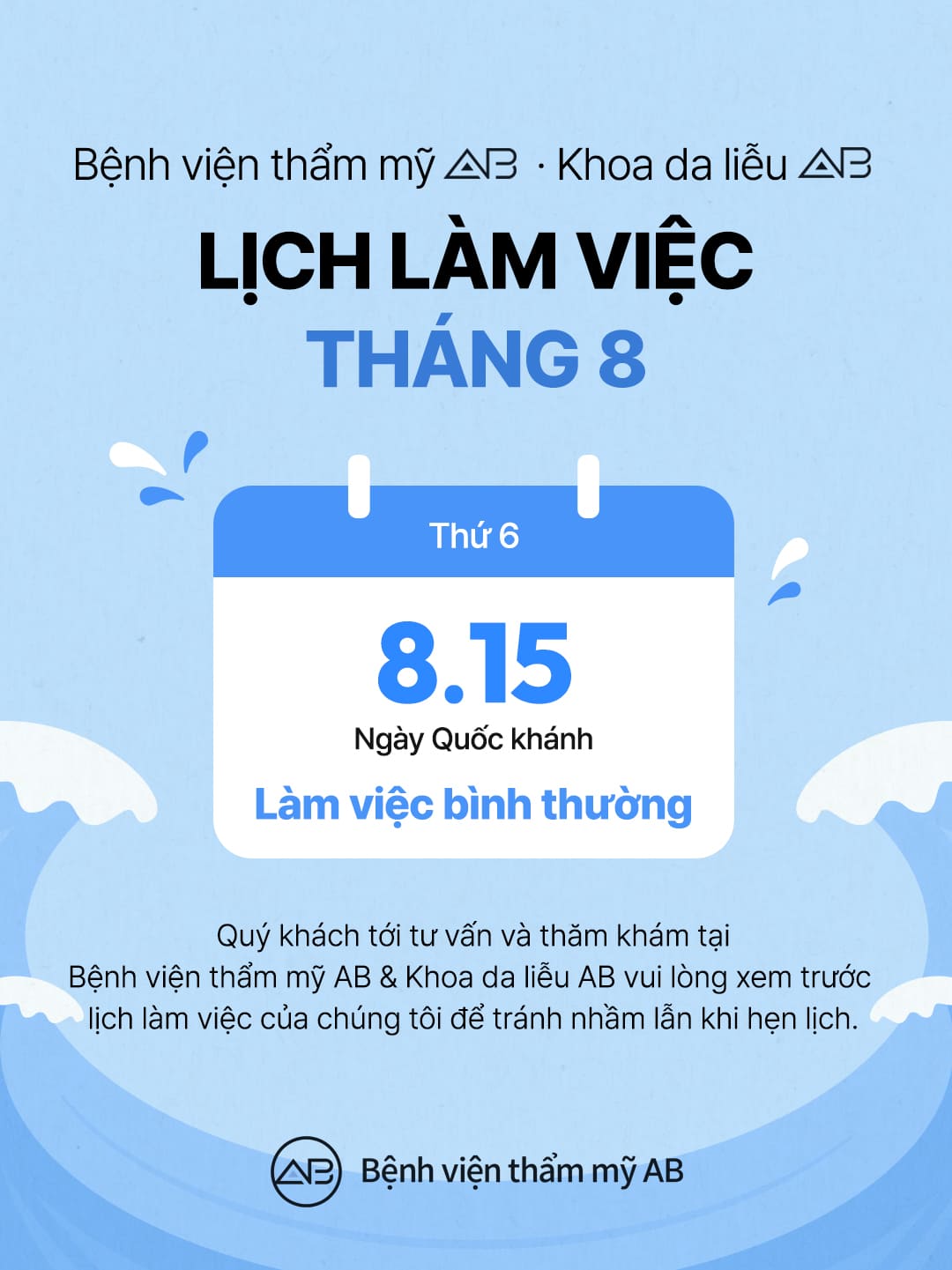 LỊCH LÀM VIỆC THÁNG 8