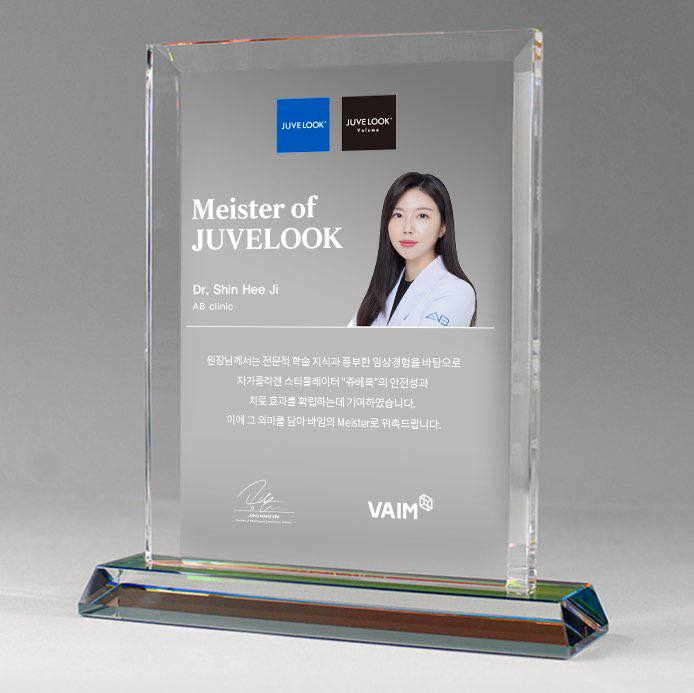 Chúng tôi hân hạnh thông báo rằng Bác sĩ Shin Hee Ji của AB Clinic chính thức nhận danh hiệu Juvelook Meister từ Baim tại trụ sở chính.