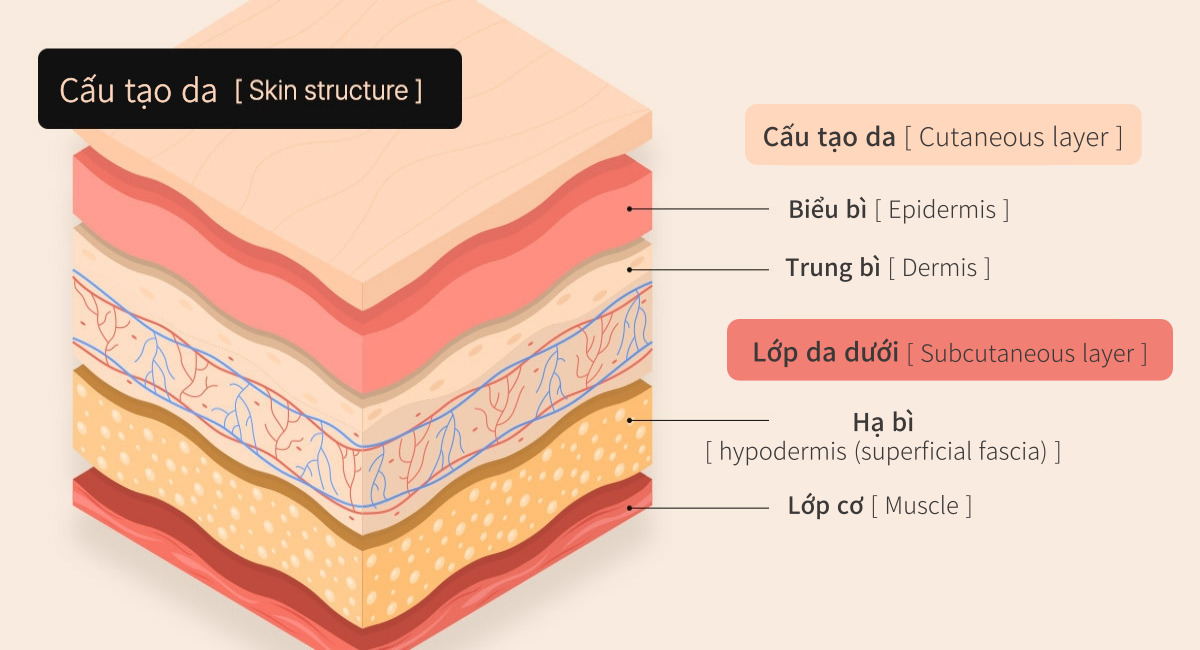 Cấu trúc da bao gồm lớp biểu bì, trung bì và tầng hạ bì (cân mạc, mỡ dưới da). Khi thực hiện nâng mũi bằng biểu bì da tự thân, mô thường được lấy từ tầng hạ bì. Tuy nhiên, do độ dày mô khác nhau ở mỗi người, vị trí lấy có thể thay đổi giữa lớp mỡ dưới da hoặc lớp cân mạc.