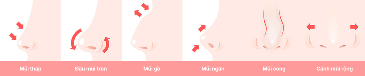 Thông thường phương pháp phẫu thuật nâng mũi là bóc tách đường sống mũi tạo ra khoảng trống để cấy ghép sụn silicon, biều bì tự thân v.v.. trường hợp mũi gồ thì mài vùng xương gồ nhô ra, trường hợp đầu mũi thấp cần phải nâng đầu mũi cao lên. Ngoài ra chức năng mũi có các vấn đề như vẹo vách ngăn mũi, hẹp vách ngăn mũi thường được cải thiện trong quá trình phẫu thuật Mũi nằm ở trung tâm khuôn mặt và giống như điểm tiêu chuẩn của khuôn mặt, tùy theo hình dáng mũi mà ấn tượng sẽ khác nhau rất nhiều. Đó là lý do tại sao bạn cần tới bệnh viện để thăm khám với bác sĩ chuyên môn, nhận phác đồ phẫu thuật phù hợp với bản thân dựa trên kết quả phân tích chi tiết và chính xác của các hiết bị chuyên dụng để bác sĩ giúp bạn nắm bắt mức độ bất cân xứng trên khuôn mặt của bản thân và xem sống mũi nên điều chỉnh theo hướng nào để giảm bớt đi sự bất đối xứng. Ngoài ra, bác sĩ sẽ tư vấn giúp bạn xem rằng các vùng khác như đầu mũi, chóp mũi, mũi khoằm v.v..có cần thiết phải chỉnh sửa hay không.