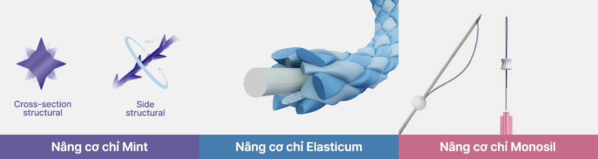 Có nhiều loại chỉ được sử dụng trong nâng cơ bằng chỉ và phương pháp xử lý cũng khác nhau đối với mỗi loại chỉ. Vì vậy điều quan trọng là phải lựa chọn chỉ phù hợp tùy theo mức độ lão hóa da của mỗi người. Nâng cơ bằng chỉ Mint cải thiện hiệu quả tình trạng má chảy xệ, nếp nhăn và có ưu điểm kéo dài trên 6 tháng.