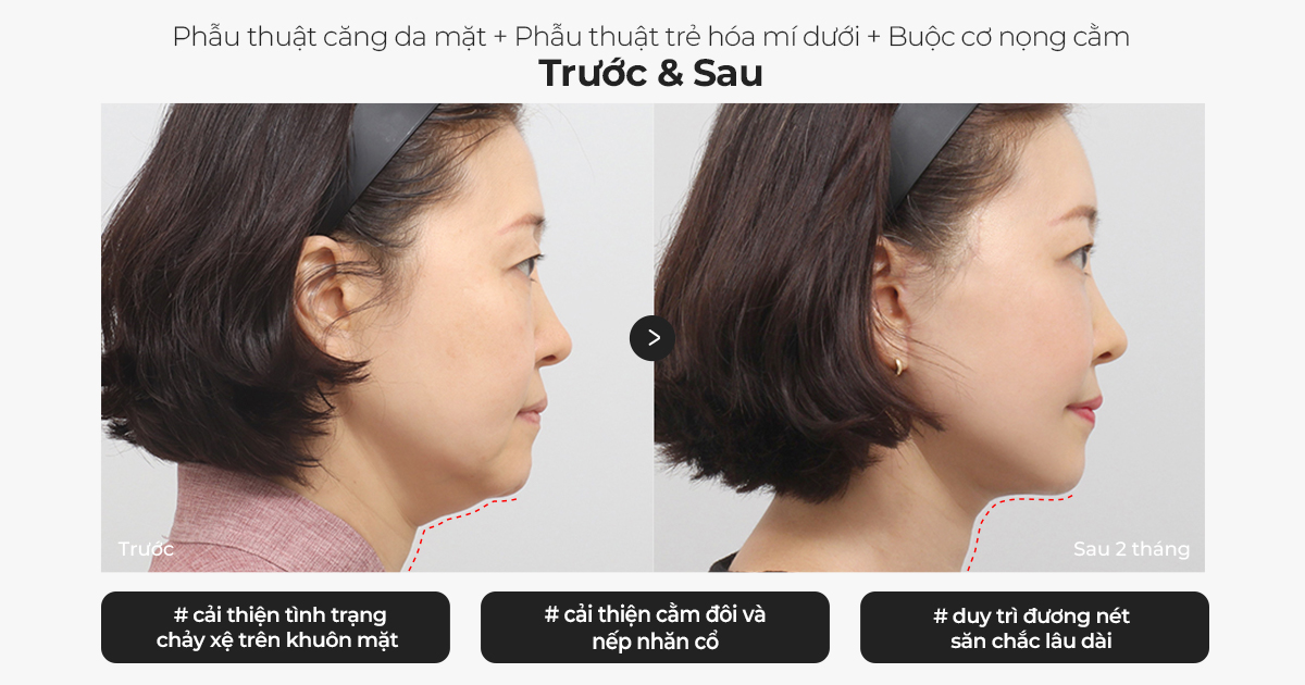 👉 Căng da mặt + trẻo hóa mí dưới + siết cơ cổ