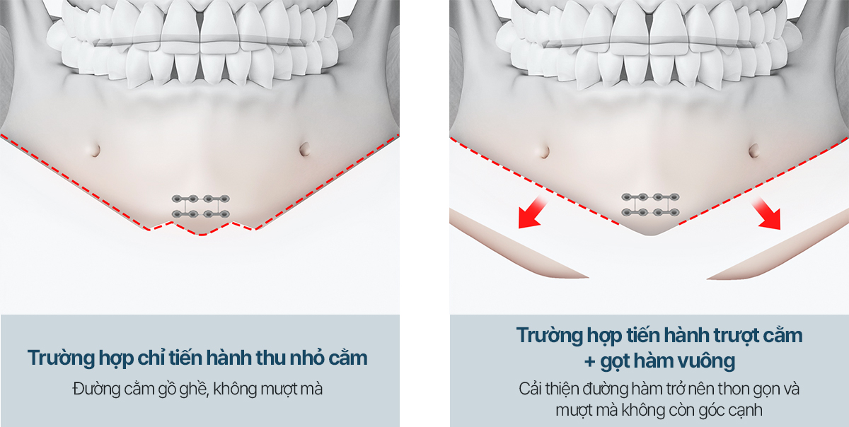 Do đó, mặc dù phẫu thuật hàm vuông đơn thuần có thể mang lại kết quả mong muốn tùy thuộc vào cấu trúc khuôn mặt và mục tiêu của từng người, nhưng các phương pháp bổ sung như phẫu thuật Trượt cằm có thể được cân nhắc để có kết quả cân đối hơn.