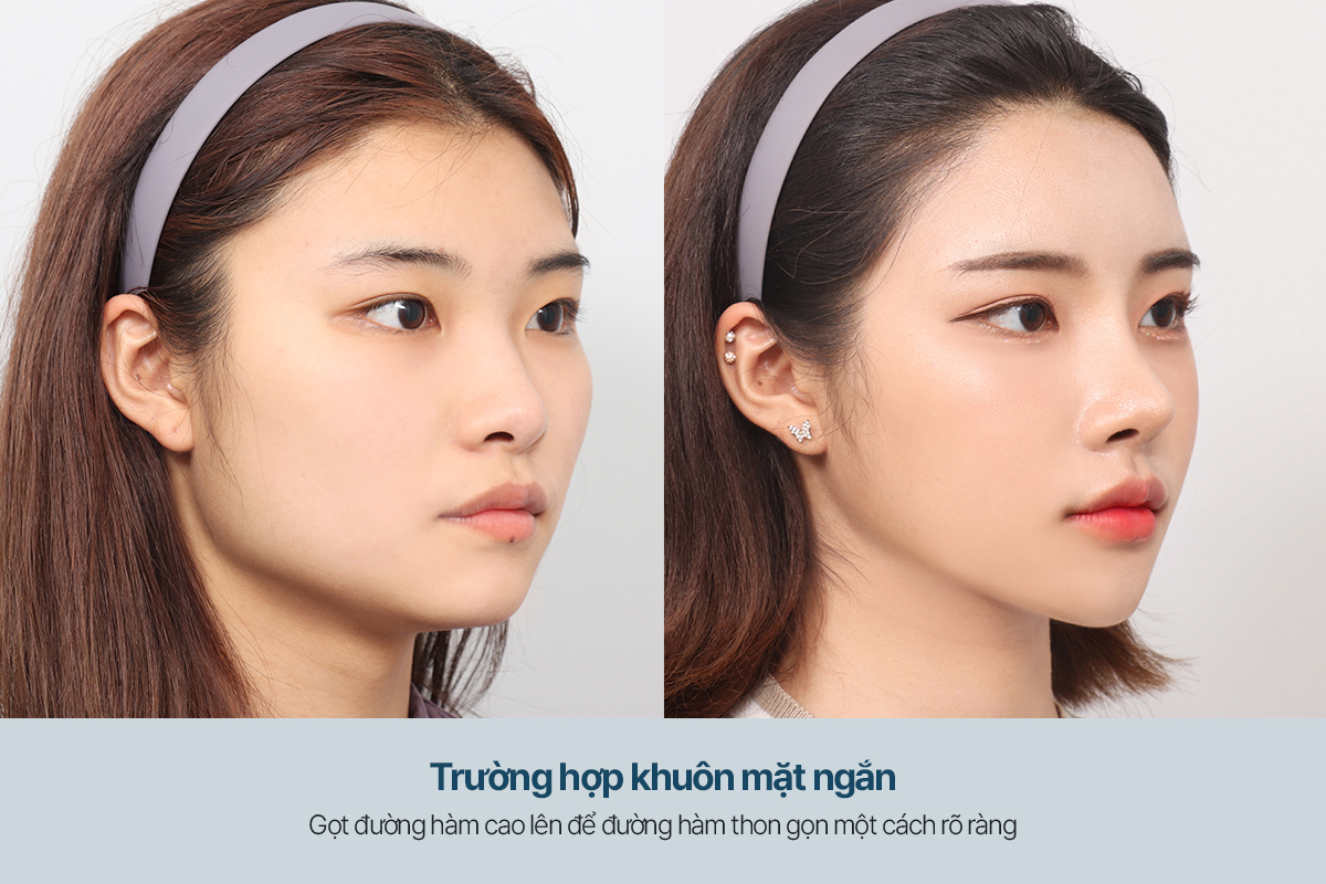 Với khuôn mặt ngắn, phần đường nét hàm có thể trông ngắn và rộng hơn so với tỷ lệ tổng thể. Trong trường hợp này, bác sĩ sẽ nâng góc hàm và gọt nhẹ nhàng để tạo đường nét thon gọn, giúp khuôn mặt trở nên thanh thoát hơn. Đồng thời, phương pháp này còn giúp khuôn mặt trông dài ra về chiều dọc, tạo cảm giác cân đối và hài hòa.