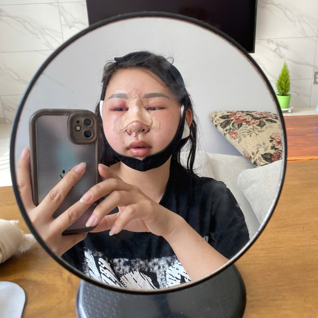 Sau khi gương mặt ổn định, dáng mũi cao tự nhiên, mềm mại, phần gò má được hạ vừa đủ, tạo nên tổng thể gương mặt cân đối và hài hòa hơn.