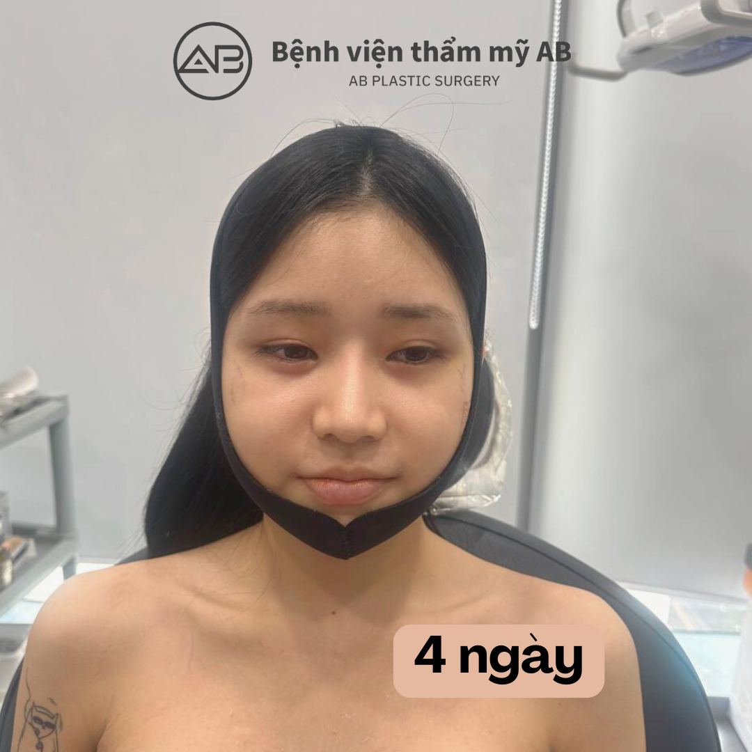 Sau phẫu thuật 4 ngày, may mắn là khuôn mặt tôi không bị sưng và bầm nhiều như những người khác. khuôn mặt trở nên nhỏ nhắn và bầu bĩnh khiến tôi rất hài lòng.